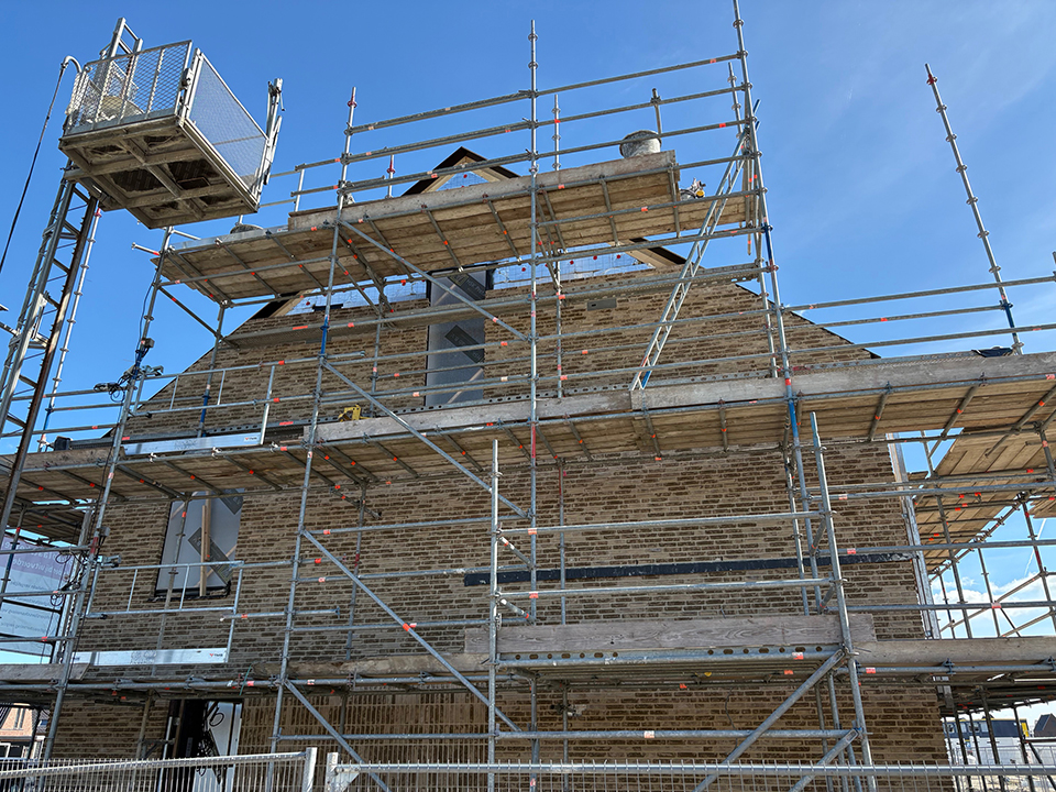 Voor weer een mooi woningbouwproject van de Scholz Groep in Velserbroekpolder, hebben wij de gevelstenen, mortels, dakpannen en dorpels mogen leveren.